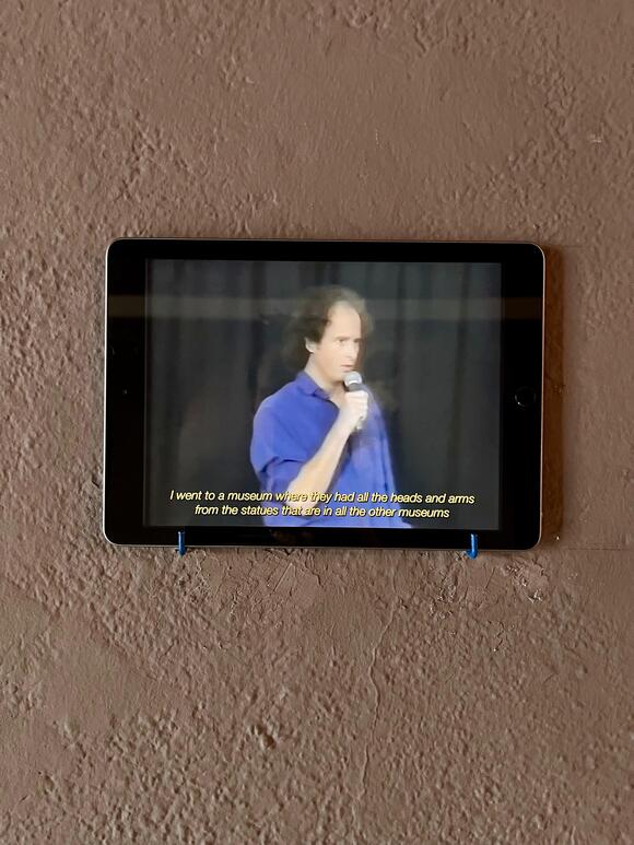 zieht sich als absurder Gag durch seine Arbeiten, Sprache wird