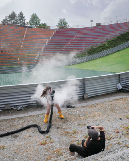 die durchs Haus führen – von Ausstellungsebene zu Ausstellungsebene. „downstairs“ heißt die fürs Museum erarbeitete Performance. Sie greift Motive aus der Kunstgeschichte auf. Denkt an Duchamps über Treppen hinabschreitender Akt – oder an Gerhard Richters nackte Ema auf der Treppe. Und jetzt: Auftritt Uhlich, bei der die Frau nun kein Sujet mehr ist. Sondern Akteurin. Auf Instagram jedenfalls gibt das MdMS schon erste Einblicke in die Kooperation mit dem Sommerszene-Festival. Wir sehen ein Urinal, wir sehen einen Downhiller – erinnert uns an Uhlichs Performance SUN site specific auf der Innsbrucker Bergiselschanze vor gut einem Jahr. Von dieser Kooperation mit der Biennale Innsbruck International haben schon in diesem Newsletter schon mehrfach berichtet. Also auch heute.